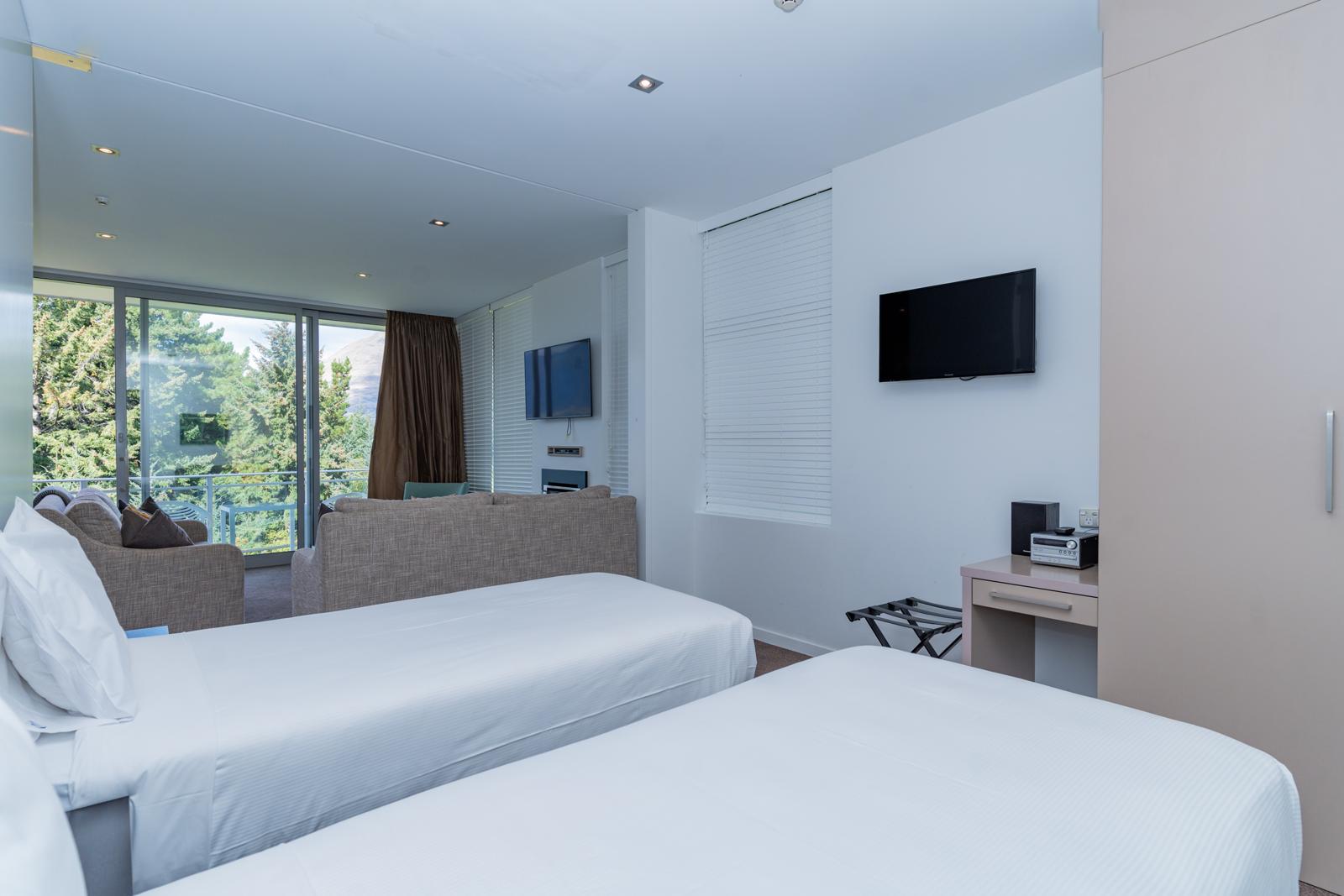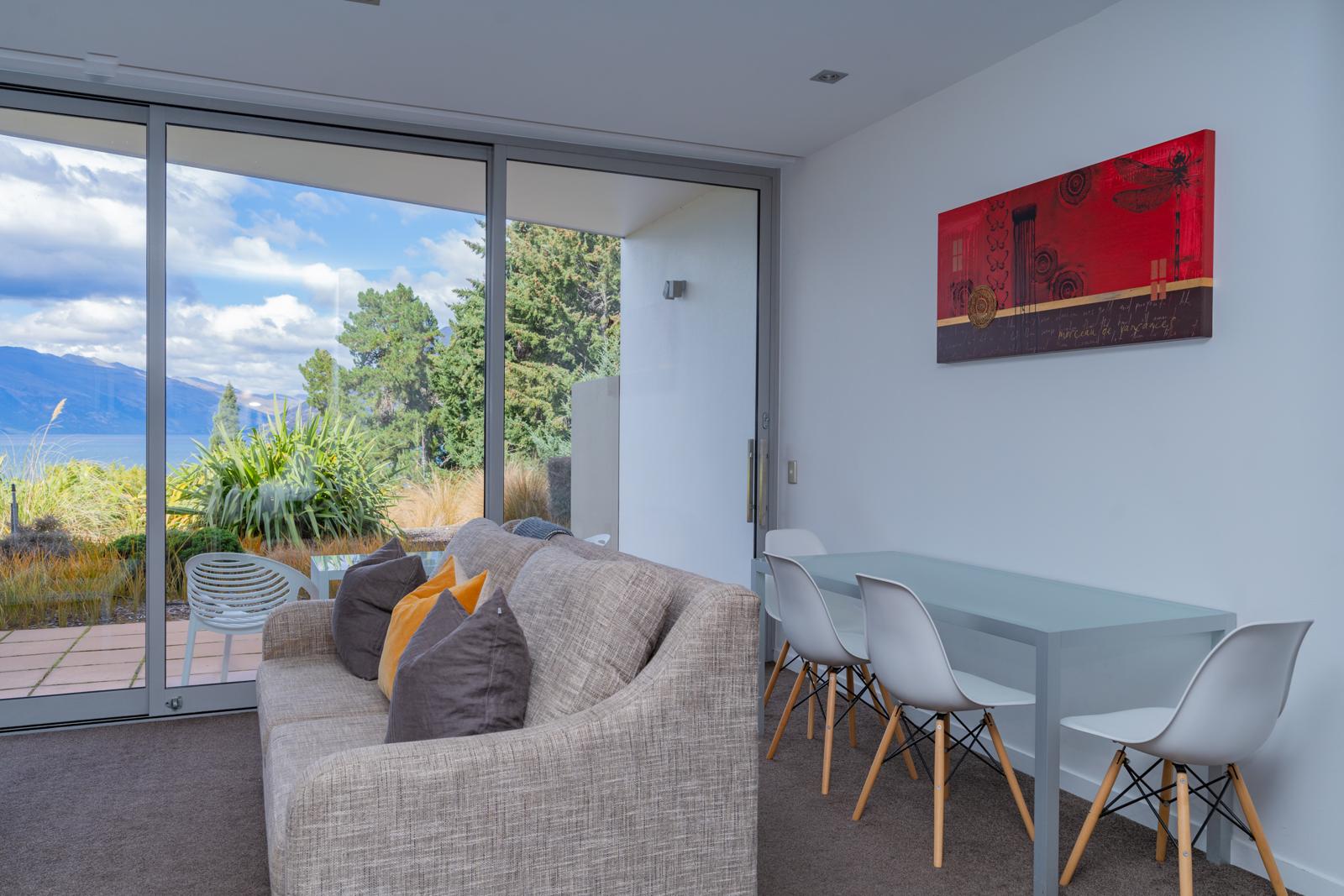 The usual reaction when guests check into our Two Bedroom Lake View Apartments is WOW! The view is breathtaking hence the reasoning for the open plan styled rooms with dividing wall for those that preferred to be closed off. What better way to wake up with the sun hitting the lake and watching the TSS Earnslaw steam its way across the pristine water of Lake Wakatipu? Whatever the season the vista is photo worthy. With an extra bathroom and ensuite, space isn't an issue for couples or a family staying with us to enjoy our alpine playground. • Stylish Apartment with Lake Views • Lounge & Dining Areas • Gas Fire and wall mounted heaters • Fully equipt Kitchen and Laundry • Three flat screen Tvs • Two ensuites with shower, bath, toilet & vanity • Underfloor heating in Bathrooms and Kitchen • Hair dryer, Iron & Ironing board • Sliding doors open onto balcony or patio • Uninterrupted breathtaking views of Lake & Mountains • Maximum of 4 persons • Choose from several configuration options: • Two Super King • One King and Twin Singles • Four Single Beds